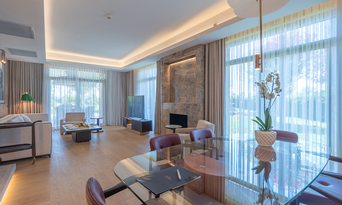 Gloria Golf Resort'un Owner Villa'sında konfor ve ayrıcalığı bir arada yaşayın. Özel ısıtmalı havuz ve geniş yaşam alanlarıyla donatılmış bu lüks villa, etkileyici manzarasıyla unutulmaz bir tatil deneyimi sunuyor.