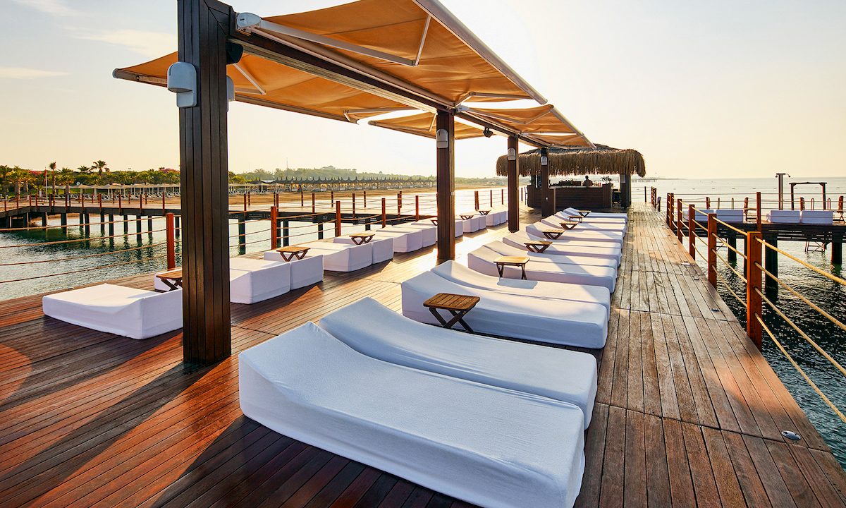 Gloria Golf Resort’un iskelesinde bulunan Pier Bar, sizi serinletici içeceklerle ve sakin atmosferiyle dinlendirmeye davet ediyor. Deniz manzarasının keyfini çıkarabileceğiniz bu özel mekan, muhteşem çeşitli içecek seçenekleri ile misafirlerimiz için vazgeçilmez bir buluşma noktasıdır. Pier Bar, Antalya tatiliniz boyunca, canınız manzaraya karşı bir şeyler içmek istediğinizde ilk tercih edeceğiniz mekanlardan biri olacaktır.