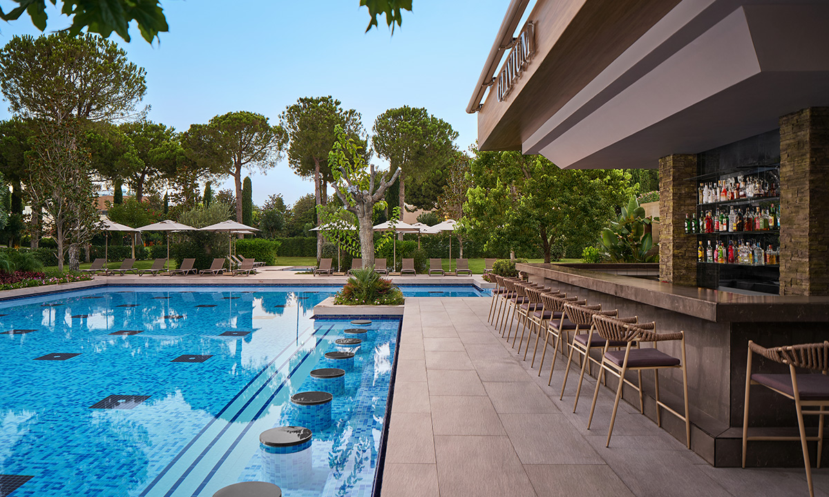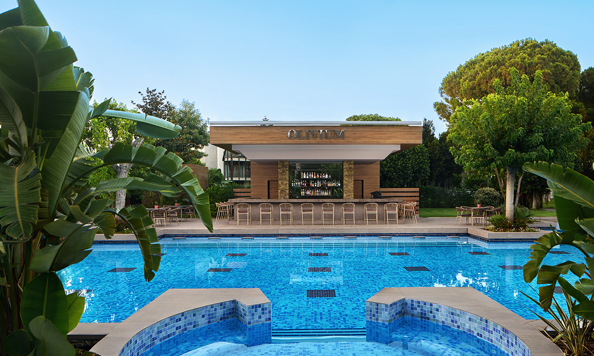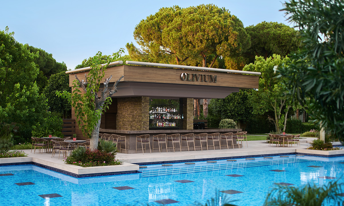 Olivium Pool Bar, güneşin sıcaklığını hissettiğinizde ya da yüzme keyfi yaparken bir mola vermek istediğinizde tercih edebileceğiniz ideal bir mekan. Havuzun taze ve berrak sularında serinlerken, susuzluğunuzu gidermek ve ferahlamak için bu harika barı ziyaret edebilirsiniz. Zengin içecek menüsü, egzotik meyve sularından serinletici kokteyllere kadar her zevke hitap ediyor. Gloria Serenity Resort'un doğal güzellikleriyle çevrili Olivium Pool Bar, lezzetli atıştırmalıklarıyla da enerjinizi toplamanıza yardımcı olacak.
